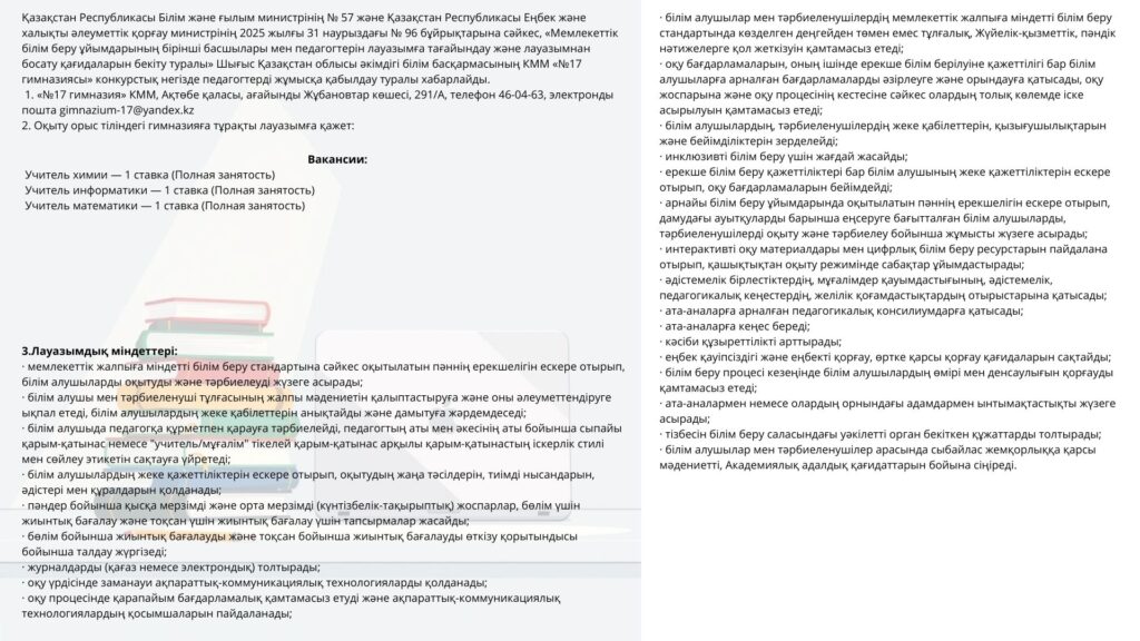 Бос педагогикалық лауазымдарға орналасуға конкурс 04-15.09.25